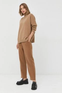 Γυναικεία Υφασμάτινα Παντελόνι από μείγμα μαλλιού Max Mara Leisure καφέ,
