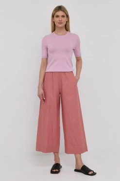 Γυναικεία Υφασμάτινα Λινό παντελόνι Max Mara Leisure χρώμα: ροζ,