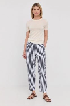 Γυναικεία Υφασμάτινα Βαμβακερό παντελόνι Max Mara Leisure χρώμα: ναυτικό μπλε,